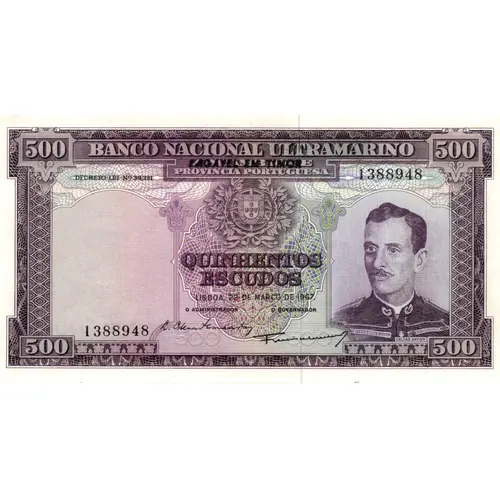 | Reverse description | BanKnote from Mozambique with printed stamp PAGAVEL EM TIMOR. |