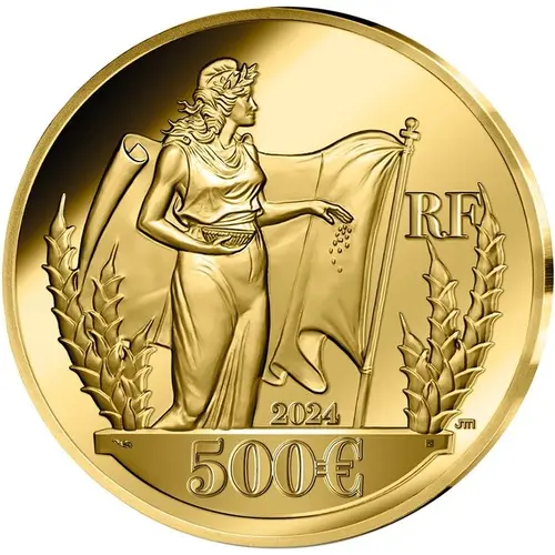| Obverse lettering | RF 2024 500 € JM (Translation: French Republic) |