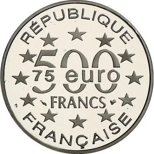 | Obverse lettering | RÉPUBLIQUE 500 FRANCS 75 euro FRANÇAISE |