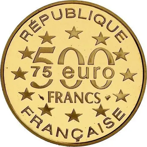 | Chữ khắc mặt trước | RÉPUBLIQUE 500 FRANCS 75 euro FRANÇAISE |