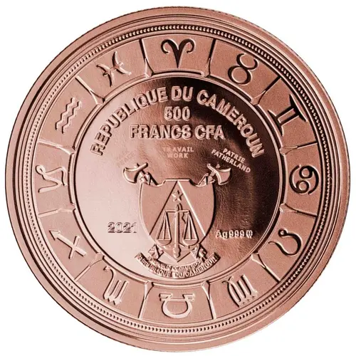 | Obverse lettering | REPUBLIQUE DU CAMEROUN 500 FRANCS CFA PAIX TRAVAIL PATRIE PEACE WORK FATHERLAND 2021 Ag 999 mw REPUBLIC OF CAMEROON |