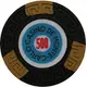 | Obverse description | Black and ochre token, blue and white center. |