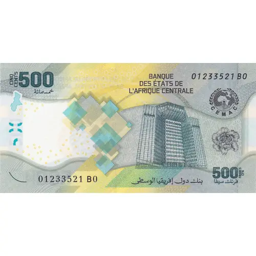 Obverse lettering BANQUE DES ÉTATS DE L`AFRIQUE CENTRALE بنك دول إفريقيا الوسطى 500 FRANCS CFA فرنك سيفا