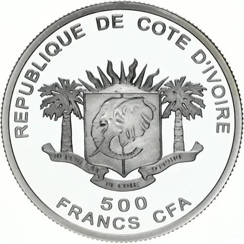| Obverse lettering | REPUBLIQUE DE COTE D`IVOIRE 500 FRANCS CFA (Translation: Republic of Ivory Coast) |