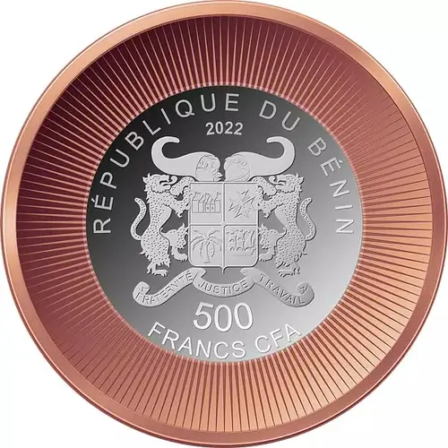 | Opis líce | REPUBLIQUE DU BENIN 2022 FRATERNITE JUSTICE TRAVAIL 500 FRANCS CFA (Translation: Republic of Benin Brotherhood Justice Work) |