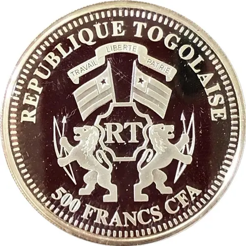 | Légende de l’avers | REPUBLIQUE TOGOLAISE TRAVAIL LIBERTE PATRIE RT 500 FRANCS CFA (Translation: Togolese Republic Labour Freedom Homeland) |