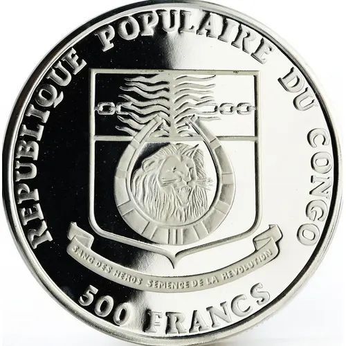 | Obverse lettering | REPUBLIQUE POPULAIRE DU CONGO 500 FRANCS (Translation: People`s Republic of Congo) |