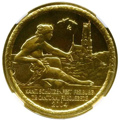 | Obverse lettering | KANT SCHÜTZENFEST FREIBURG TIR CANTONAL FRIBOURGEOIS 2004 |