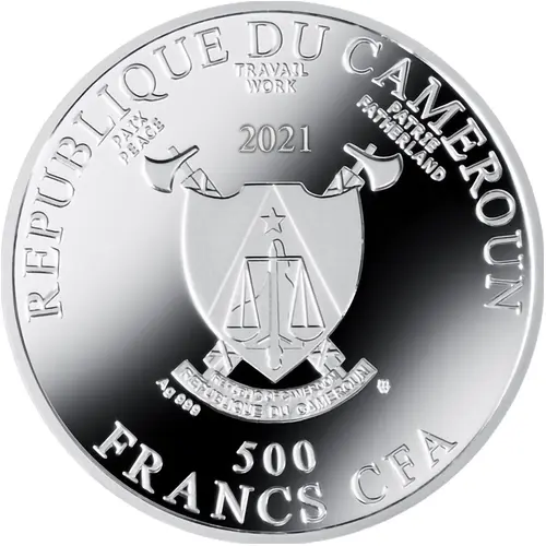REPUBLIQUE DU CAMEROUN PAIX TRAVAIL PATRIE PEACE WORK FATHERLAND REPUBLIC OF CAMEROON 2021 500 FRANCS CFA Ag 999 mw |