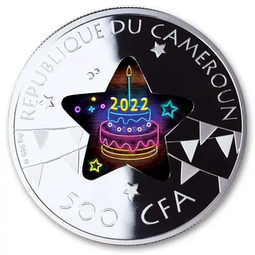 | Legenda del dritto | REPUBLIQUE DU CAMEROUN 2022 500 CFA Ag 999 mw (Translation: Republic of Cameroon.) |