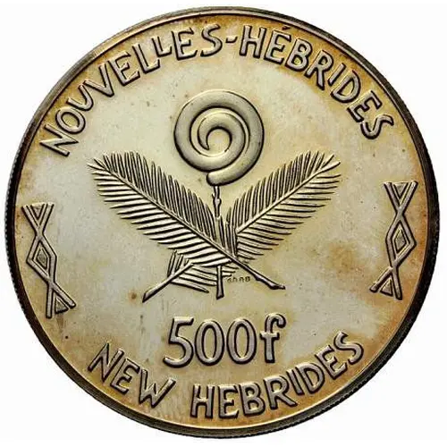 Obverse lettering NOUVELLES HÉBRIDES 500f NEW HEBRIDES