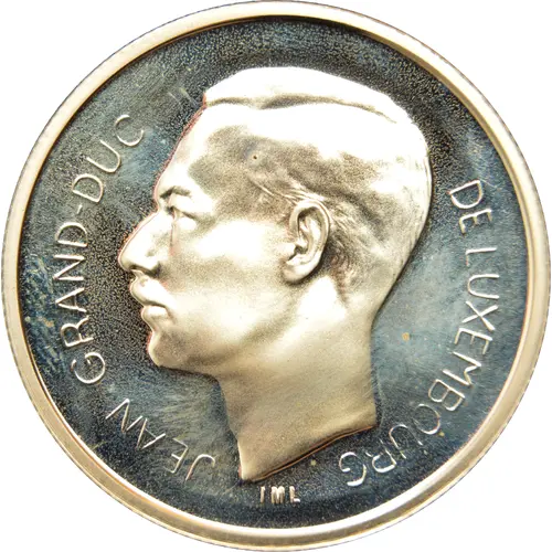 | Obverse description | Portrait to the left of Jean (1921-), Grand Duke of Luxembourg from 1964 to 2000 surrounded by legend and face value. Under the head the initials of the Luxembourg Monetary Institute (IML). |