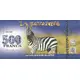 | Obverse description | A large zebra against a savannah background, a QR code and security patterns. |