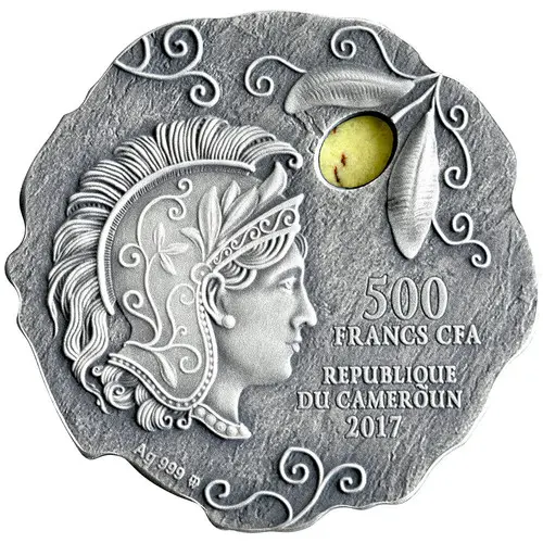 | Legenda awersu | 500 FRANCS CFA REPUBLIQUE DU CAMEROUN 2017 Ag 999 mw (Translation: Republic of Cameroon.) |