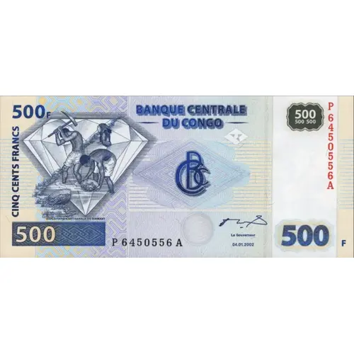 500F BANQUE CENTRALE DU CONGO CINQ CENTS FRANCS (Translation: Five Hundred Francs Central Bank of Congo) |