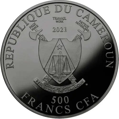 | Legenda awersu | REPUBLIQUE DU CAMEROUN PAIX TRAVAIL PATRIE REPUBLIC OF CAMEROON 2021 500 FRANCS CFA Ag 999 mw |