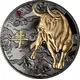 | Opis rewersu | Golden ox (Bos taurus) at right, Chinese character and red crystal insert at left. |