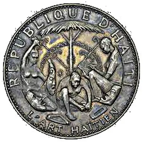 | Opschrift voorzijde | REPUBLIQUE D`HAÏTI L`ART HAÏTIEN (Translation: Republic of Haiti Haitian Art) |