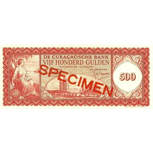 25 NOVEMBER 1954 NEDERLANDSE ANTILLEN 500 `SPECIMEN` (Translation: November 25, 1954 Netherlands Antilles 500) |