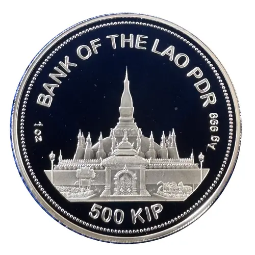 | Chữ khắc mặt trước | BANK OF THE LAO PDR 1 OZ Ag 999 500 kip |