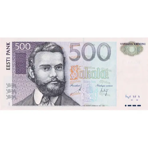 (Translation: Bank of Estonia, Five Hundred Kroon)