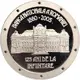The façade of the Palace of the National Bank of Romania in 25, Lipscani St. The inscriptions `BANCA NAŢIONALĂ A ROMÂNIEI` and the years `1880-2005` are engraved semicircularly on the upper side. The inscription `125 ANI DE LA ÎNFIINŢARE` is engraved on two lines beneath the model of the building. |