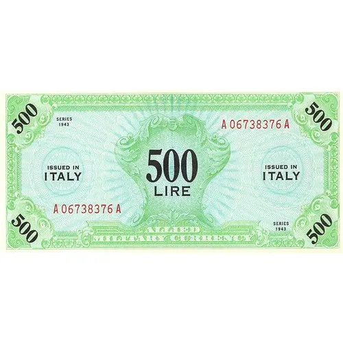 | نوشتههای روی اسکناس | SERIES 1943 ISSUED IN ITALY 500 LIRE ALLIED MILITARY CURRENCY |