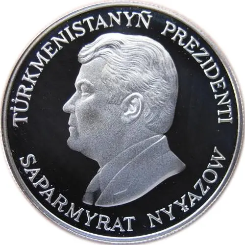 | Obverse description | The left profile of President Saparmurat Niyazov (1991-2006). |