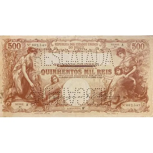| Opis rubu | 500 MIL RÉIS 500 MIL RÉIS REPÚBLICA DOS ESTADOS UNIDOS DO BRASIL QUINHENTOS MIL RÉIS GEORGES DUVAL INV. ET DEL. EMILE CROSBIE SC. (Translation: 500 Thousand Reis Republic of United States of Brazil Five Hundred Thousand Reis Georges Duval Inv. et Del. Emile Crosbie Sc.) |