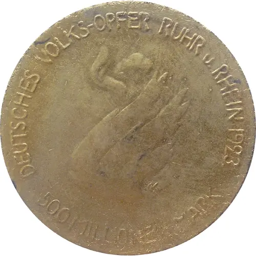 | 正面铭文 | DEUTSCHES VOLKS-OPFER RUHR u. RHEIN 1923 500 MiLLIONEN MARK |