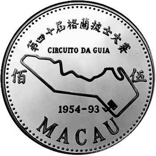 | Obverse lettering | CIRCUITO DA GUIA 1954-1993 MACAU |