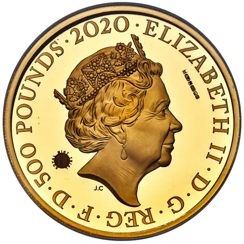 ELIZABETH II·D·G·REG·F·D·500 POUNDS·2020· A J 999 W ROYAL MINT TRIAL J.C (Translation: Elizabeth the Second by the Grace of God Queen Defender of the Faith) |