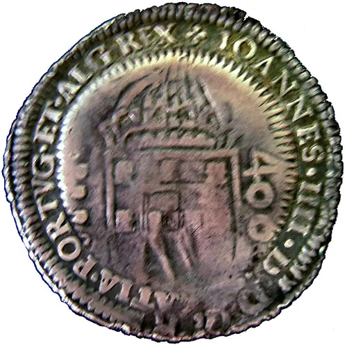 Historical Context: This 500 Réis coin (1688-1704) reflects monetary revaluation under King Pedro II (1683-1706). A countermarked Cruzado of João IV, it exemplifies a common practice to adjust currency without new minting. This revalidation addressed economic necessities, like fluctuating silver prices or denomination standardization. The countermark officially elevated older coinage's nominal value, ensuring circulation and demonstrating the crown's efforts to maintain stability before Brazilian gold discoveries transformed Portugal's economy.