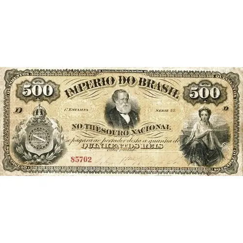 | Obverse lettering | American Bank Note Co. New York QUINHENTOS 500 500 QUINHENTOS IMPERIO DO BRASIL NO THESOURO NACIONAL se pagará ao portador desta a quantia de QUINHENTOS REIS valor recebido QUINHENTOS 500 500 QUINHENTOS (Translation: American Bank Note Co. New York Five Hundred 500 500 Five Hundred Empire of Brazil At the National Treasury The holder will be paid the amount of Five Hundred Réis Amount Received Five Hundred 500 500 Five Hundred) |