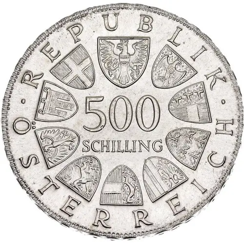 Obverse lettering ·REPUBLIK· 500 SCHILLING ÖSTERREICH