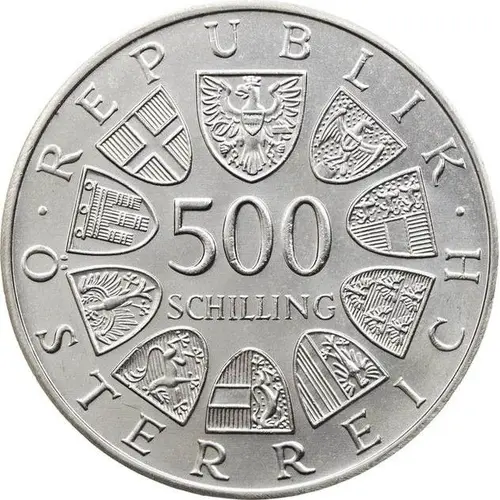 | Obverse lettering | REPUBLIK · ÖSTERREICH · 500 SCHILLING |