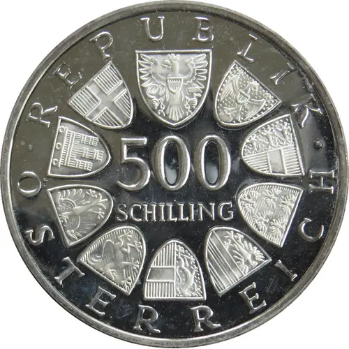| Averslegende | ·REPUBLIK· 500 SCHILLING ÖSTERREICH |