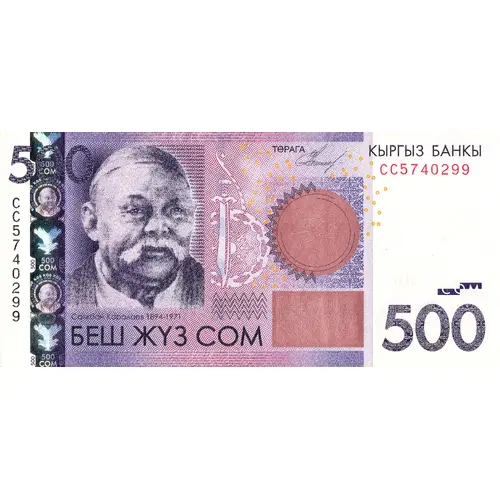 (Translation: Kyrgyz Bank, Five Hundred Som)