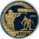 On the reverse side of the coin in the central part of the image of three biathletes at different moments of the competition. At the top of the image are five targets, three of which are made with diamond inserts. On the right side, the number `2010` denoting the year of the Olympic Games, at the bottom - the inscription `OLYMPIC GAMES` in English |