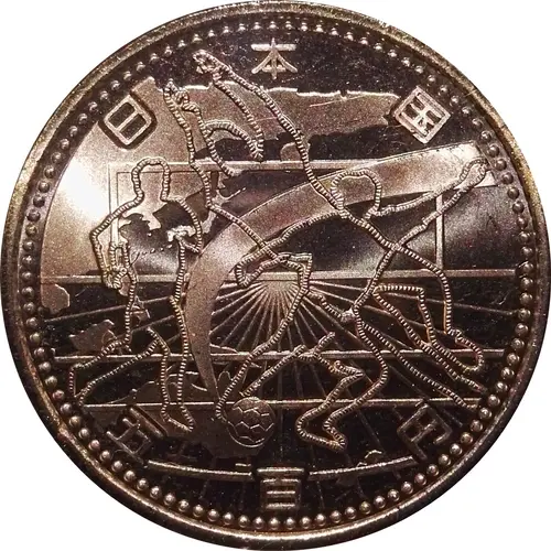 | Reverse lettering | 2002 FIFA World Cup Korea/Japan™ 500 YEN ©1999 FIFA TM 平成14年 • (Translation: Year 14 of Heisei) |