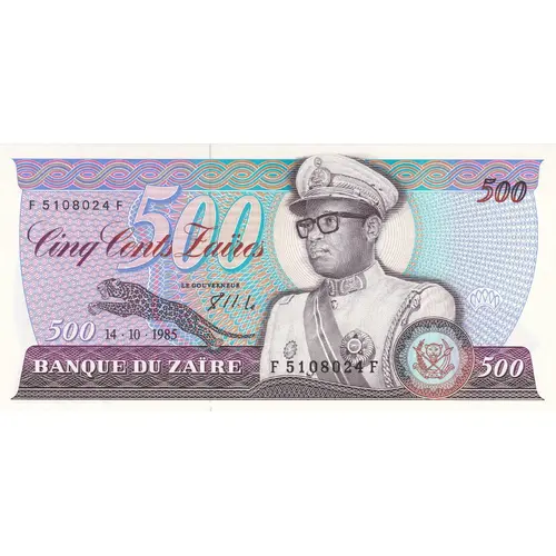 | Obverse lettering | 500 Cinq Cents Zaïres 500 BANQUE DU ZAÏRE |