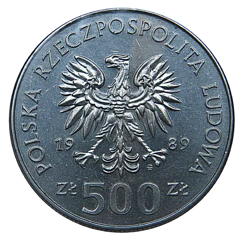 | Obverse lettering | POLSKA RZECZPOSPOLITA LUDOWA 19 89 mw ZŁ 500 ZŁ (Translation: Polish People`s Republic 19 89 mw ZL 500 ZL) |