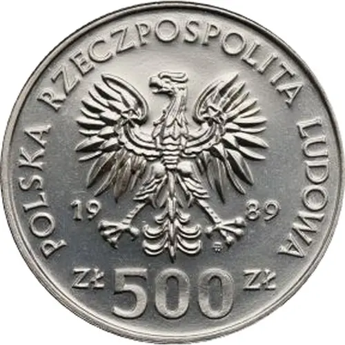 | Obverse lettering | POLSKA RZECZPOSPOLITA LUDOWA 19 89 mw ZŁ 500 ZŁ |