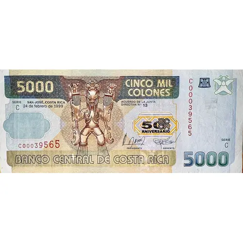 | Value | 5000 Colones (5000 CRC) |