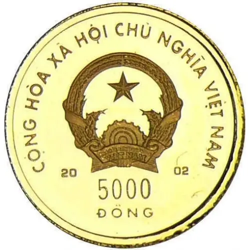 | Obverse lettering | CỘNG HÒA XÂ HỘl CHÙ NGHĨA VIỆT NAM 2002 5000 ĐỒNG (Translation: Socialist Republic of Vietnam) |