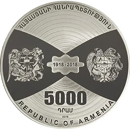 | Obverse lettering | ՀԱՅԱՍՏԱՆԻ ՀԱՆՐԱՊԵՏՈՒԹՅՈՒՆ 1918 - 2018 5000 ԴՐԱՄ REPUBLIC OF ARMENIA (Translation: Republic of Armenia Dram) |