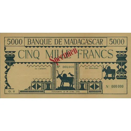 | Надписи лицевой стороны | Banque de Madagascar 5000 cinq mille francs |