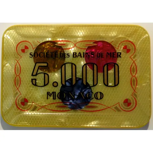 | Obverse lettering | SOCIÉTÉ DES BAINS DE MER 5.000 MONACO 0361 |