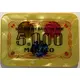 | Obverse description | Numbered yellow plate, three translucent chips in brown, red and blue. |