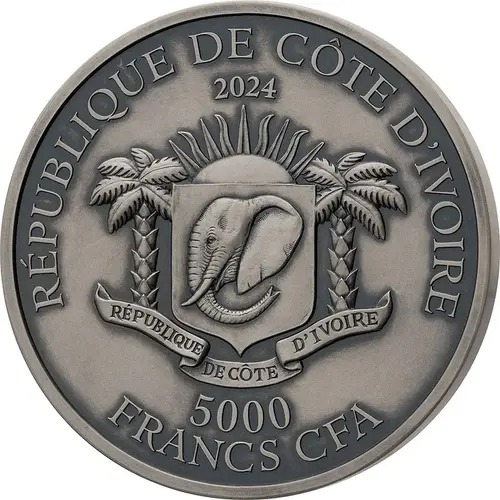 | Obverse lettering | REPUBLIQUE DE CÔTE D`IVOIRE 2024 REPUBLIQUE DE CÔTE D`IVOIRE 5000 FRANCS CFA (Translation: Republic of the Ivory Coast Republic of the Ivory Coast) |